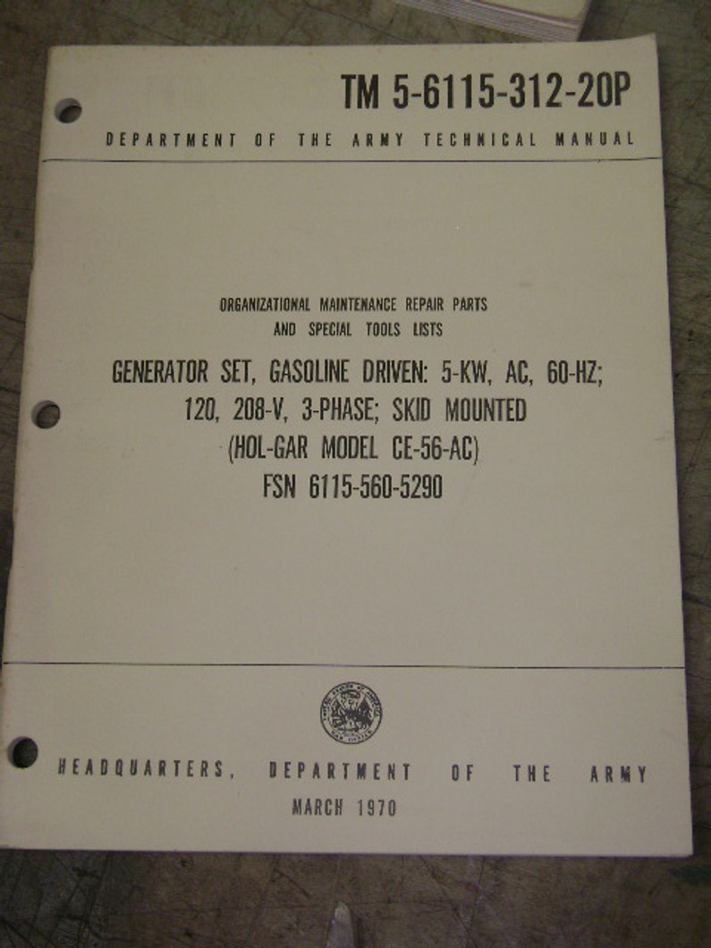 TM 5-6115-312-20P, organizational maintenance repair parts and special tools lists, 5KW, 60HZ, 3-Phase generator set, Department of the Army, March 1970.