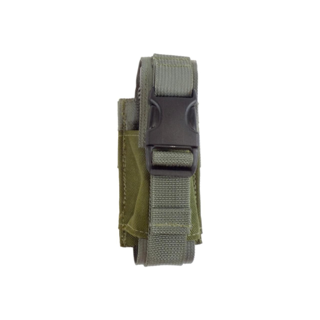 Designed to hold one frag grenade but a 6″ flashlight fits great, olive drab nylon, MOLLE strap, plastic buckle, MFR- Initial Attack (Eagle, Idaho)