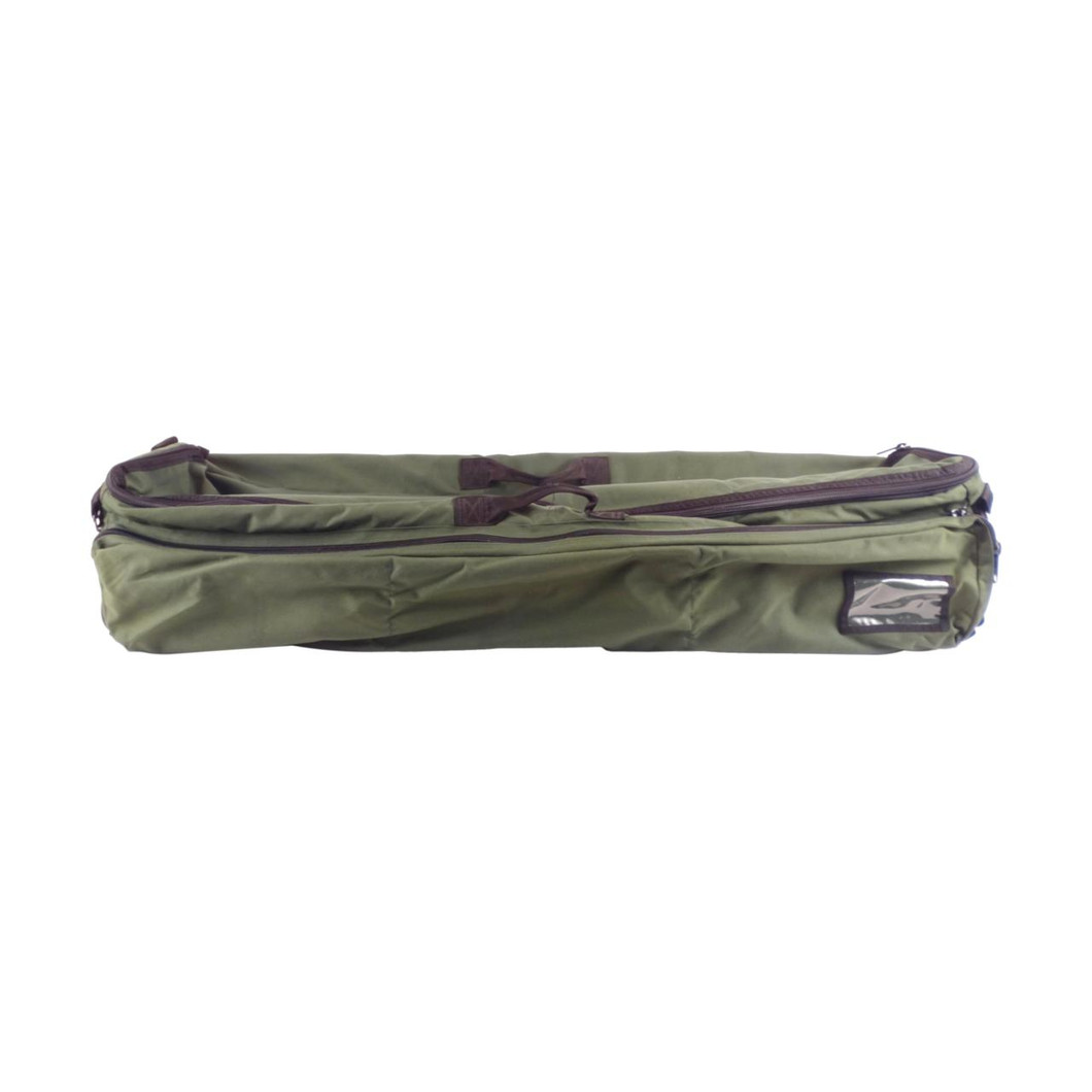 Approximately 48″ x 10″ x 10″, removable plastic tray compartment, individual mesh compartments, external pocket, YKK zippers, #44350, drag handles on the end, O-rings for attachment, Made in the USA