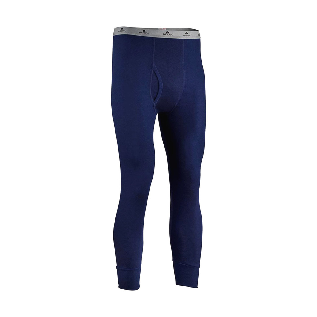 MFR- Indera Mills, 100% polypropylene, color navy, wicks moisture, dries quickly, front fly, ankle length, rib cuffs help keep the cold out