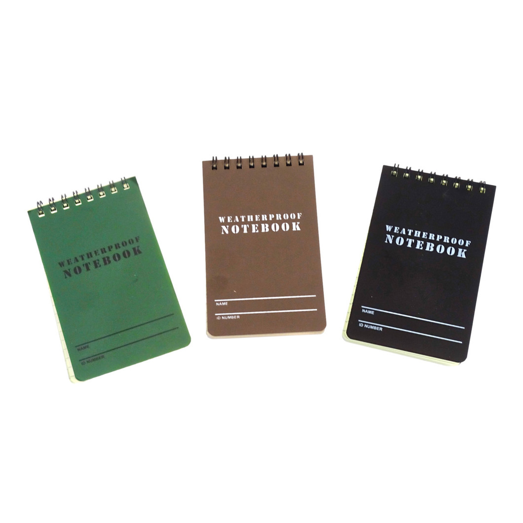New, military style, spiral binding with a flexible cover, pages are printed in a grid format, brown paper in Coyote, yellow paper in the Olive Drab and Black, sold individually, 3″ x 5″
