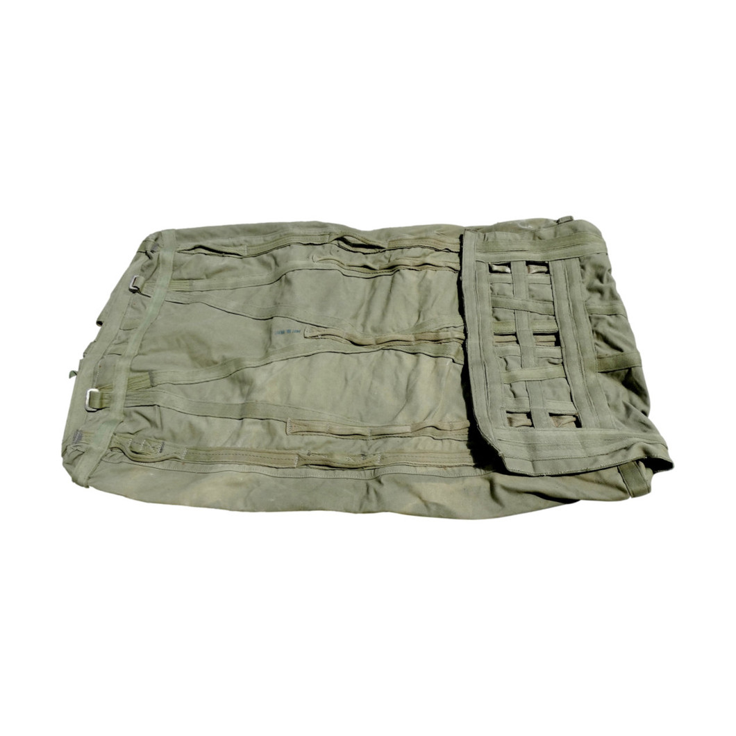 Very strong canvas, para-crate attached in special racks under the C-47 troop carrying aircraft’s wings and contained one of six elements of the 75mm Pack Howitzer, 55″ x 32″ x 8″, multiple canvas carrying straps, heavy steel hardware, great for collectors and reenactors.
