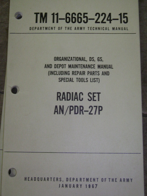TM 11-6665-224-15, organizational and maintenance manual for radiac set AN/PDR-27P, Department of the Army, January 1967