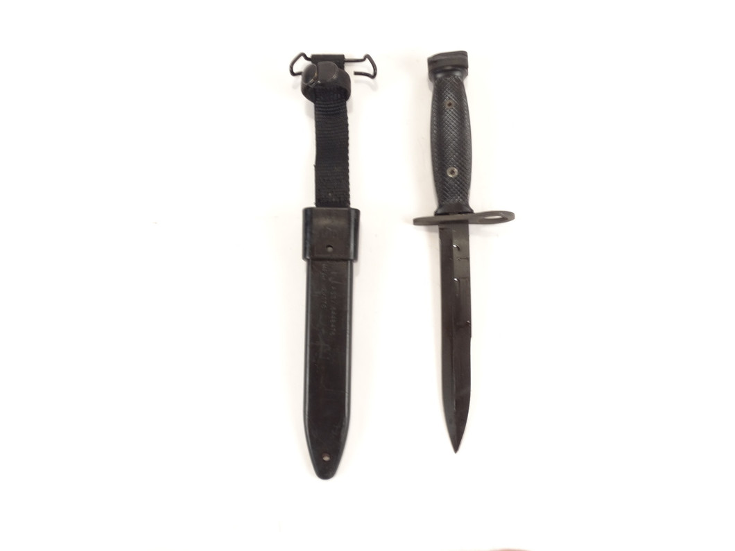 Genuine U.S. Military Issue Ontario Knife Company M7 Bayonet (fits the M-16). These are in like new condition with a black M10 plastic sheath.