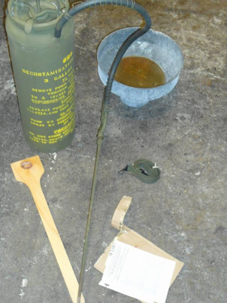 New, dated mid 1950s, includes 3-gallon pump and wand, funnel, paddle and the repair and maintenance technical bulletin. TB 3-220-7.