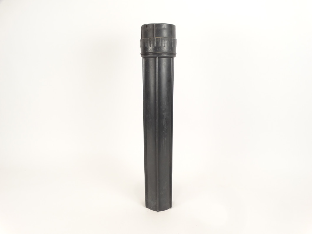 Used, empty, held one 81MM cartridge for mortars M1 and M29, heavy plastic, threaded cap, total length 23″, 3″ inside diameter, not for food storage, great for rolling targets (storage).