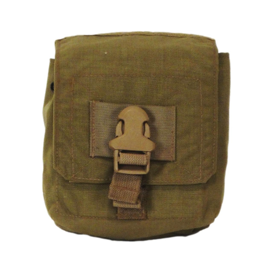 Used, good condition, khaki nylon, MOLLE attachable, NSN: 8465-01-519-5168, MFR- Eagle Industries, AP-M60-MS-KH, approximately 6″ x 6″ x 3″