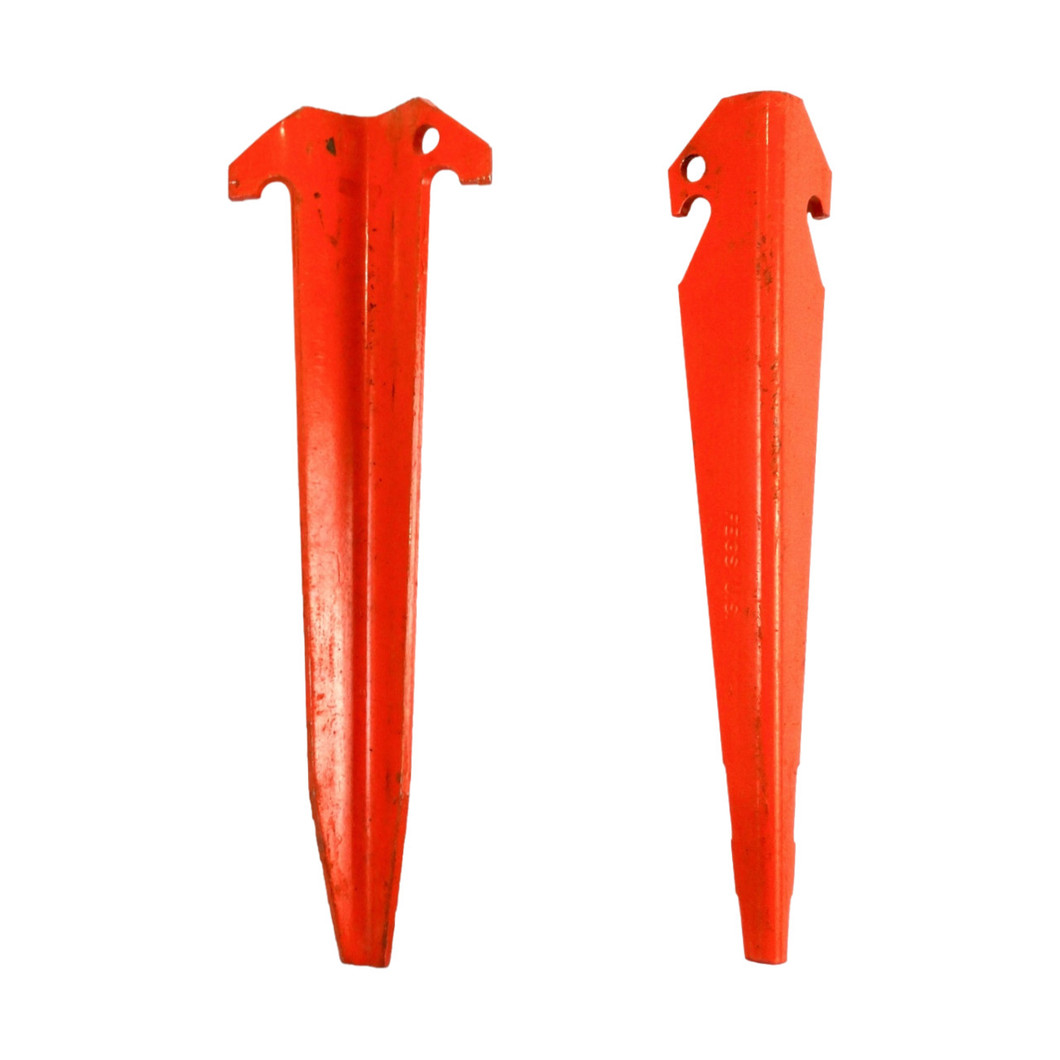 Metal V-shape tent stakes provide excellent holding power in soft ground, snow or sand.