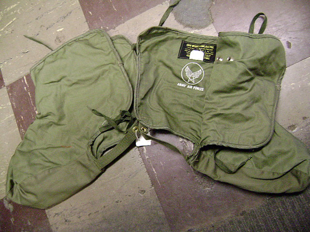 Type Q-1, G.E. Cat. No. PA22E, size: large (for shoe sizes 9-10), Spec No. 3236, Stock No. 8300-7014-60, Order No. (33-038)-45-4356-AF, made in USA by General Electric, “Army Air Forces”, cotton.